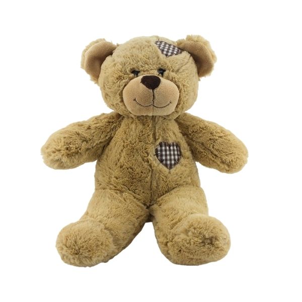 Beautiful soft light brown coloured fur, and big embroidered patches. A classic traditional teddy bear with a modern twist - and really cute.